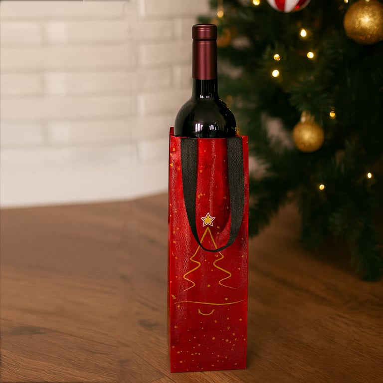 SACOLA GARRAFA 34X10X10 CM METALIZADA NATAL FLEXÍVEL