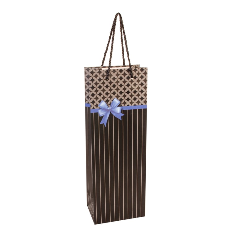 SACOLA GARRAFA 36X12,8X8,4 CM ESTAMPA LAÇO CARTONADA