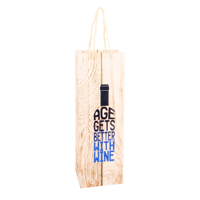 SACOLA GARRAFA 36X12X9 CM ESTAMPA AMADEIRADA CARTONADA