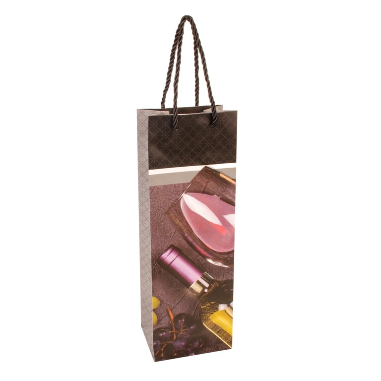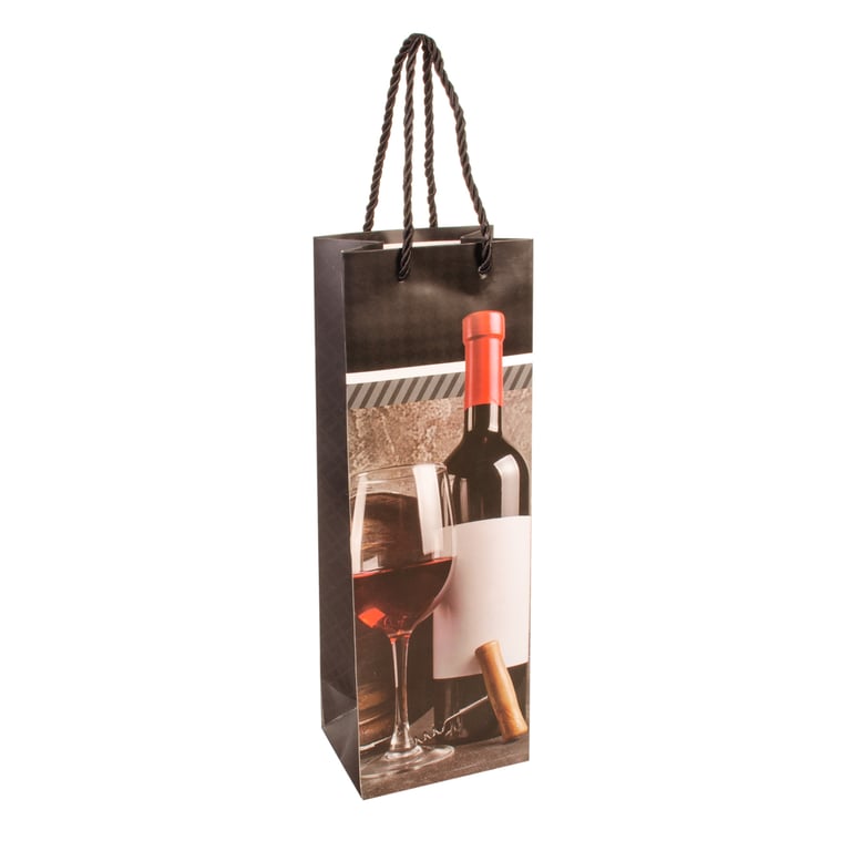 SACOLA GARRAFA 36X12X9 CM ESTAMPA VINHOS CARTONADA
