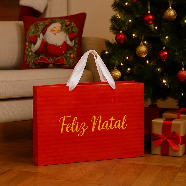 SACOLA NATAL 23,5X34X10 CM VERMELHA CARTONADA