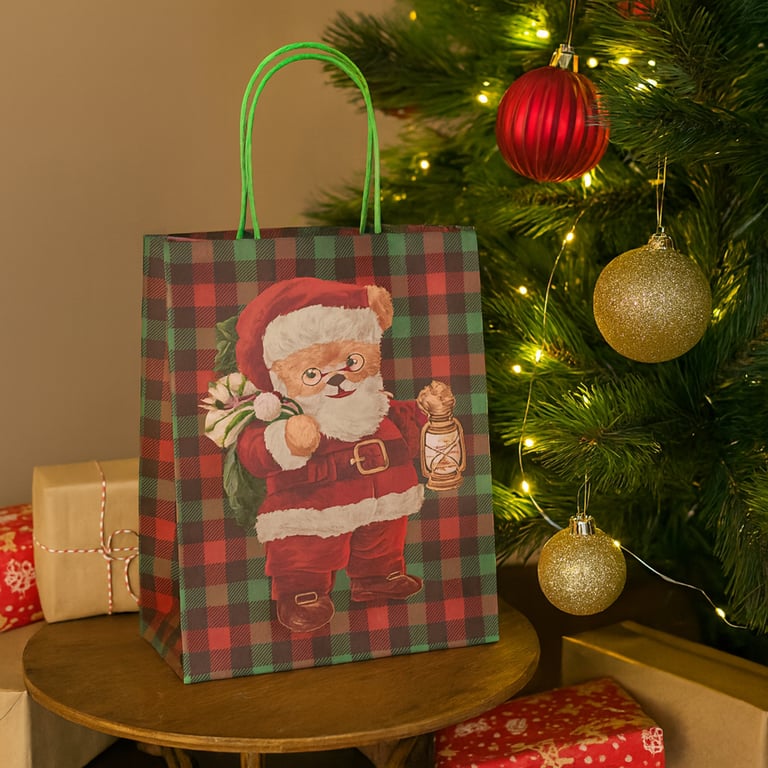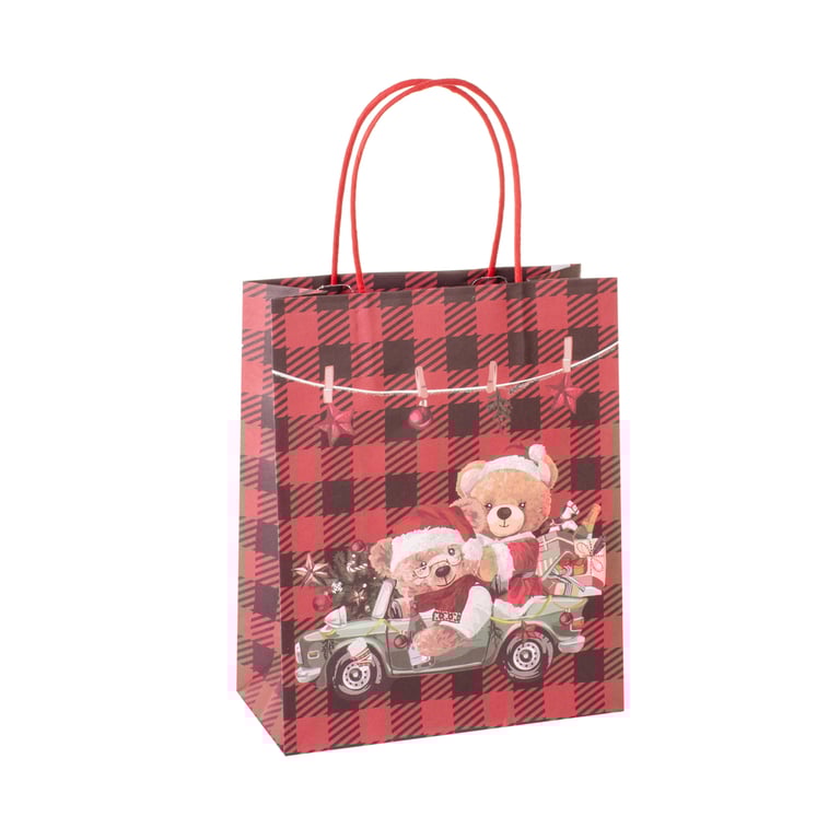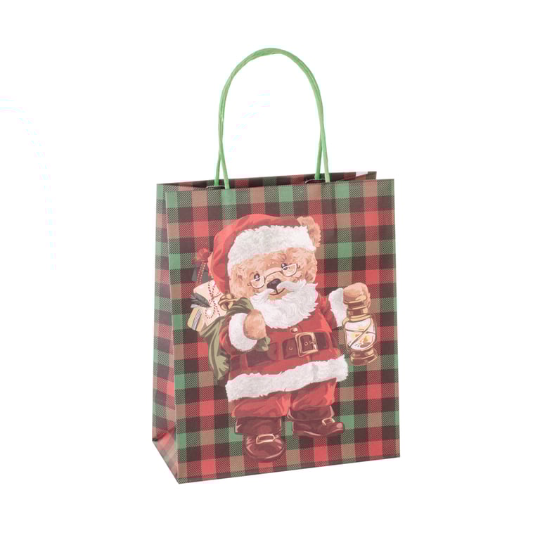 SACOLA NATAL 25,5X21X10 CM XADREZ URSO NOEL GLITTER FLEXÍVEL