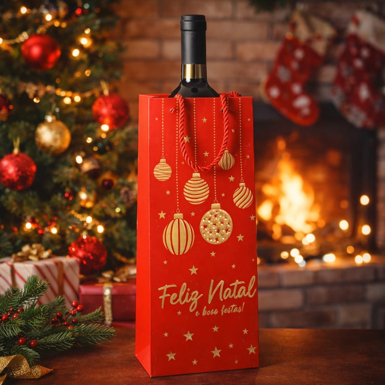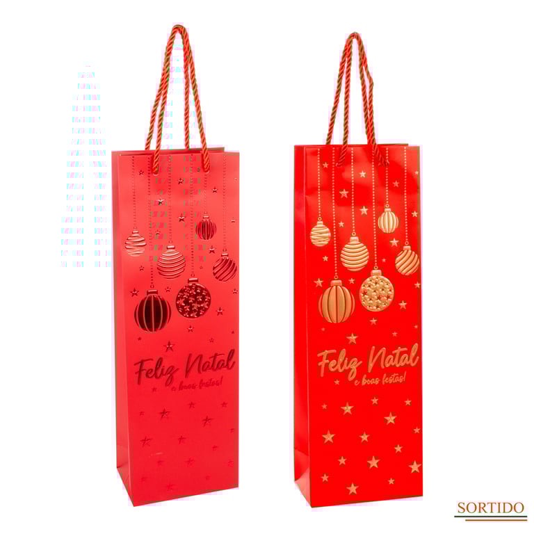 SACOLA NATAL 36X12X7 CM GARRAFA DECORADA EM RELEVO COM ALÇA