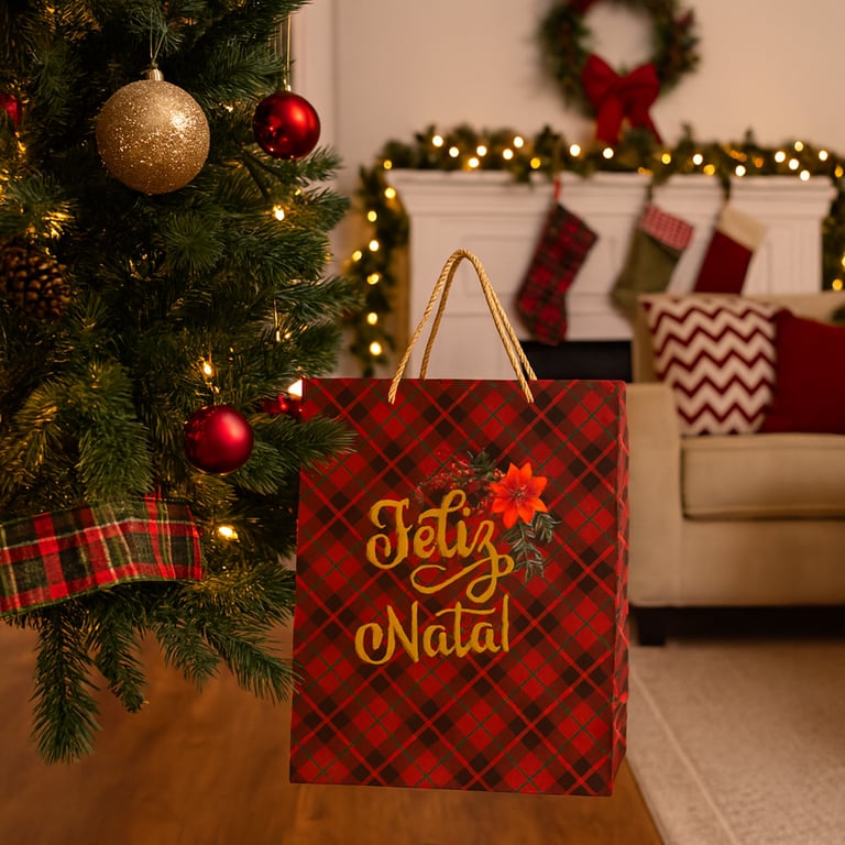 SACOLA NATAL 37X28X12 CM XADREZ