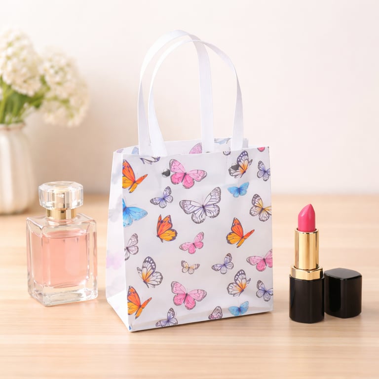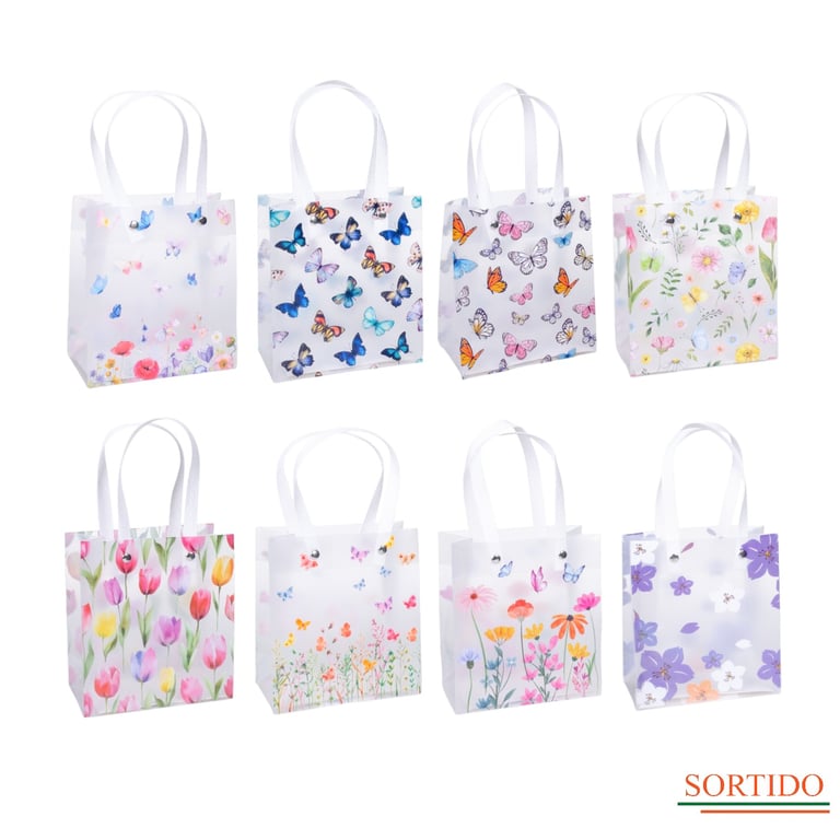 SACOLA PRESENTE 15,5X13X7 CM PLÁSTICA BORBOLETAS / FLORAL