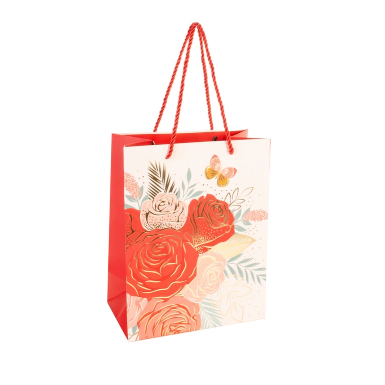 SACOLA PRESENTE 23X18X10 CM DETALHES METALIZADOS CARTONADA