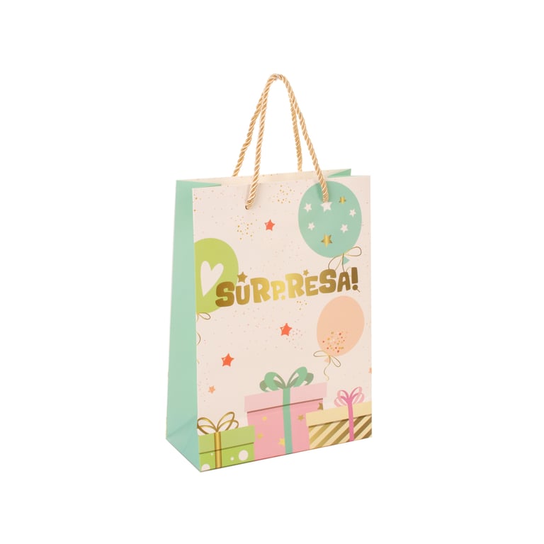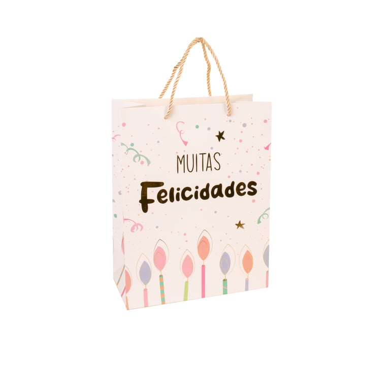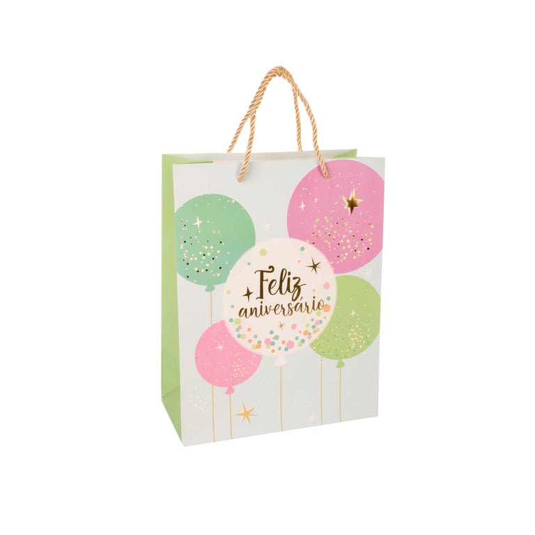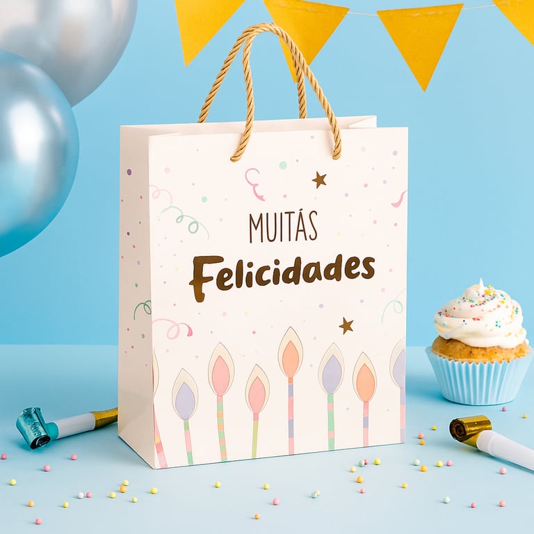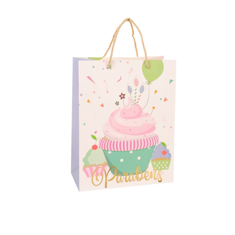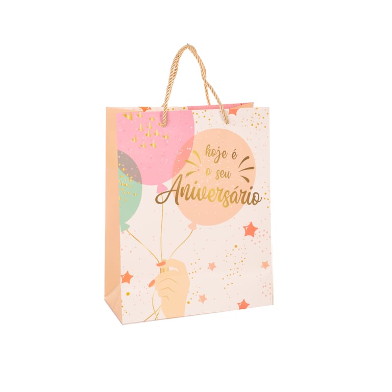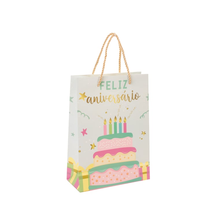 SACOLA PRESENTE 27X19,4X8,6 CM DECORADA ANIVERSÁRIO CARTONADA