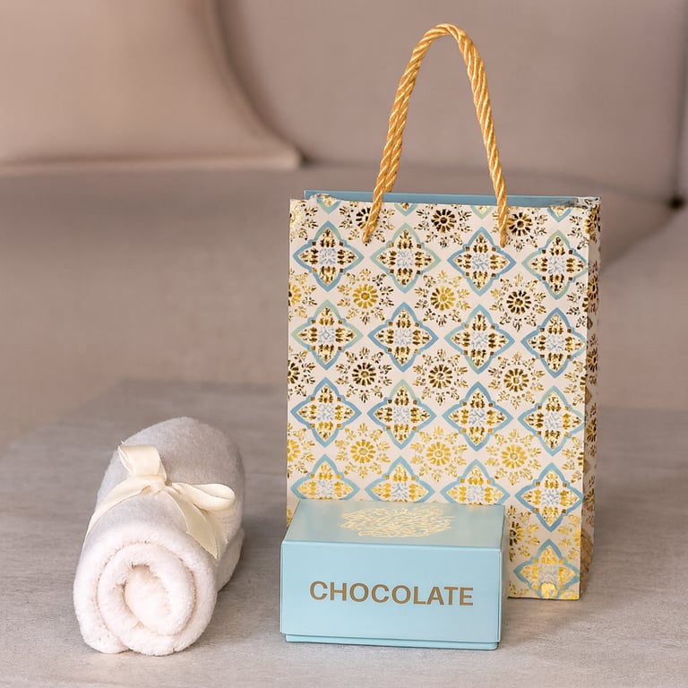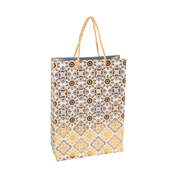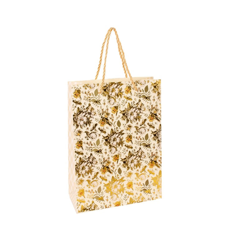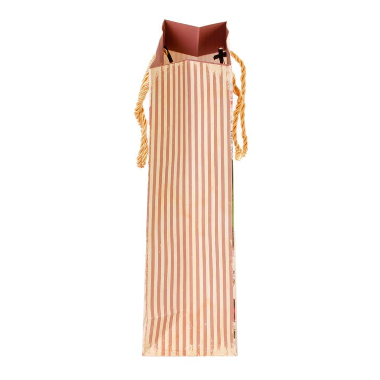 SACOLA PRESENTE 27X19,4X8,6 CM DETALHES METALIZADOS DOURADOS CARTONADA