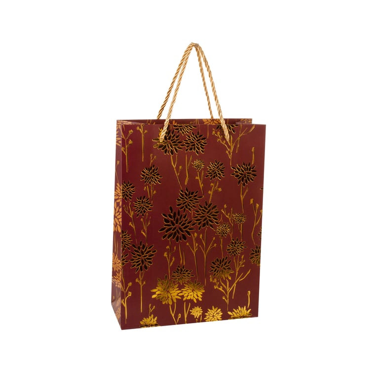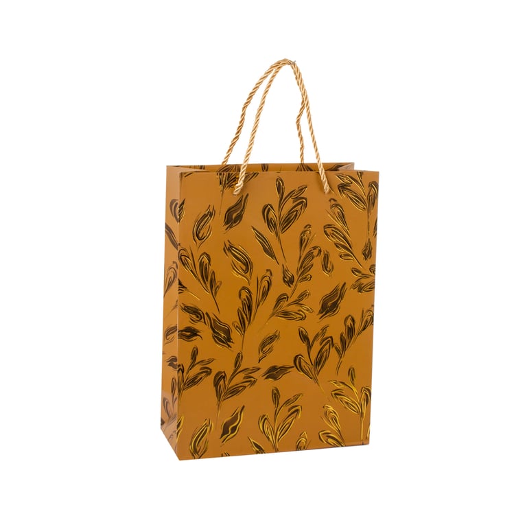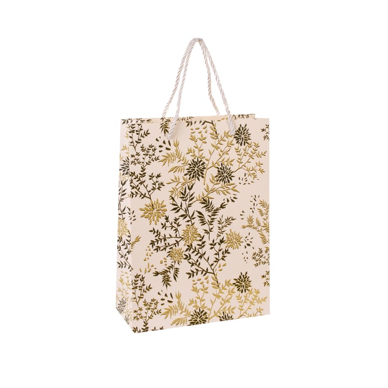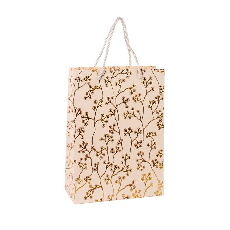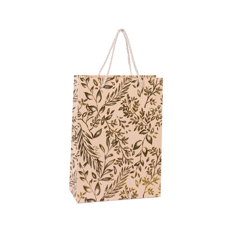 SACOLA PRESENTE 27X19,4X8,6 CM DETALHES METALIZADOS DOURADOS CARTONADA