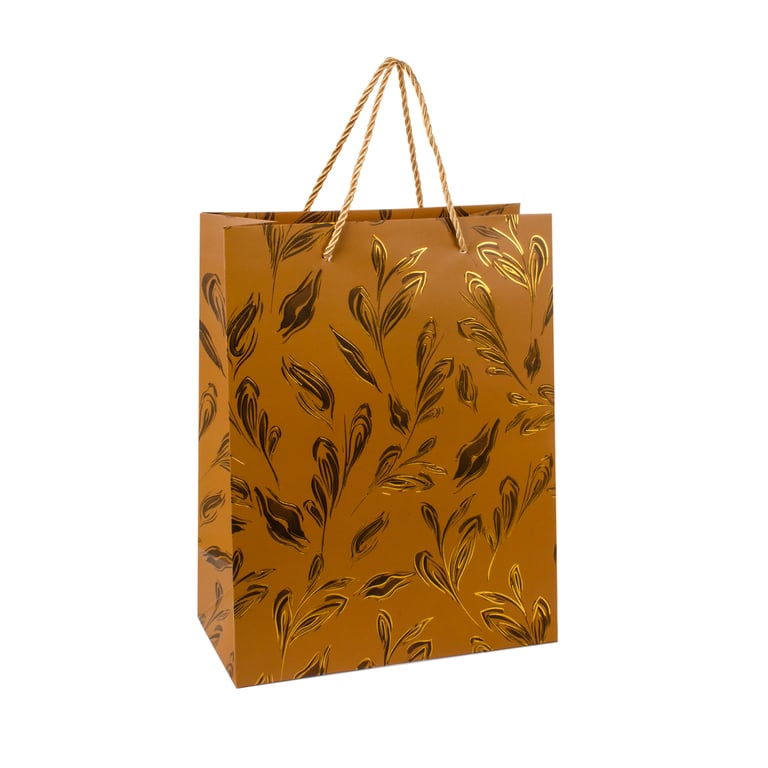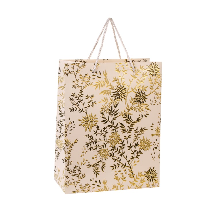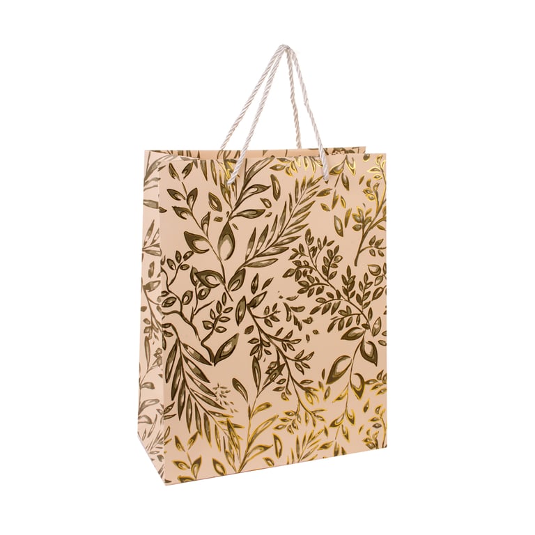 SACOLA PRESENTE 31X24X12 CM DETALHES METALIZADOS DOURADOS CARTONADA