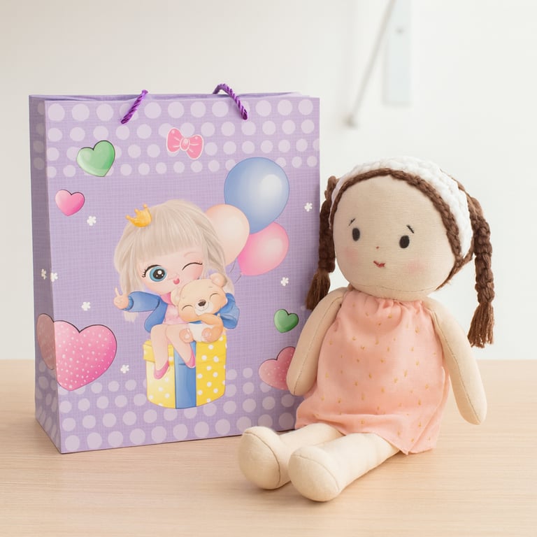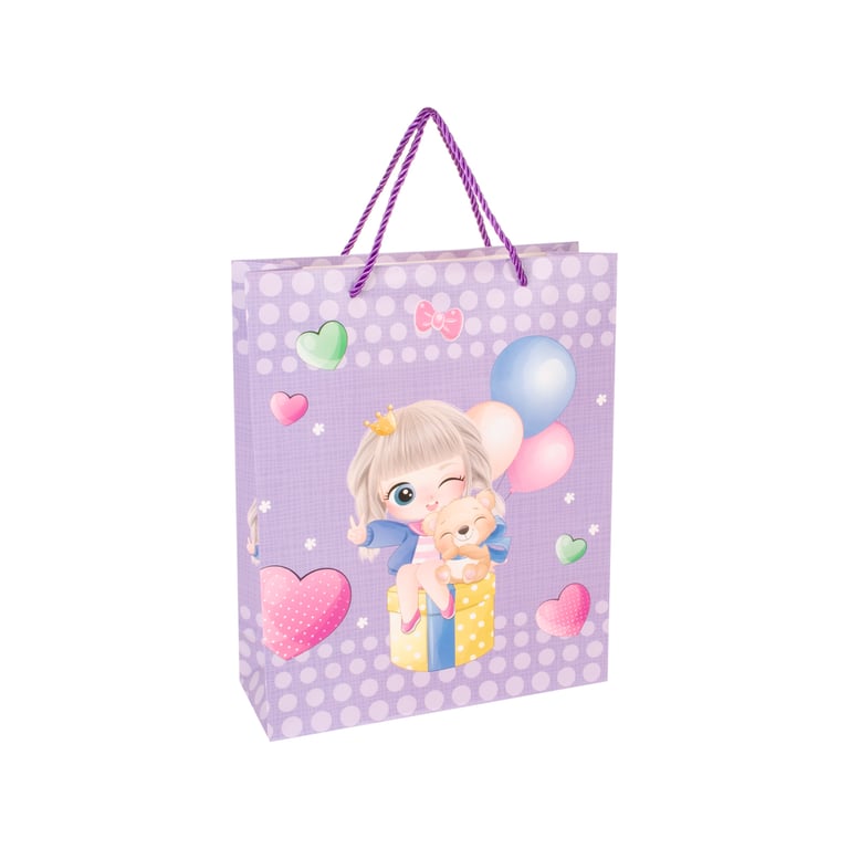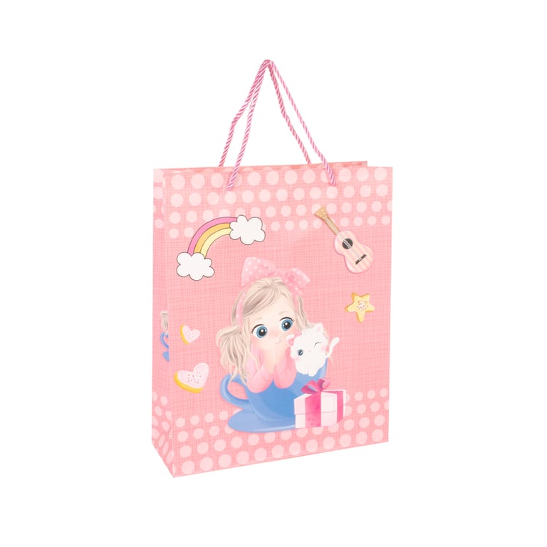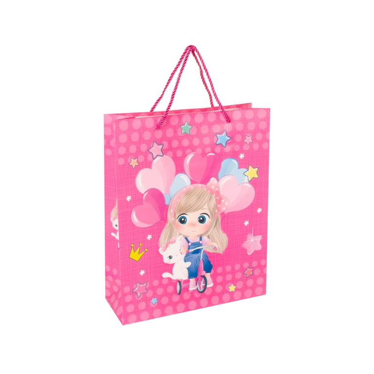 SACOLA PRESENTE 32X26X10 CM MENINA COM PET CARTONADA