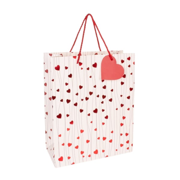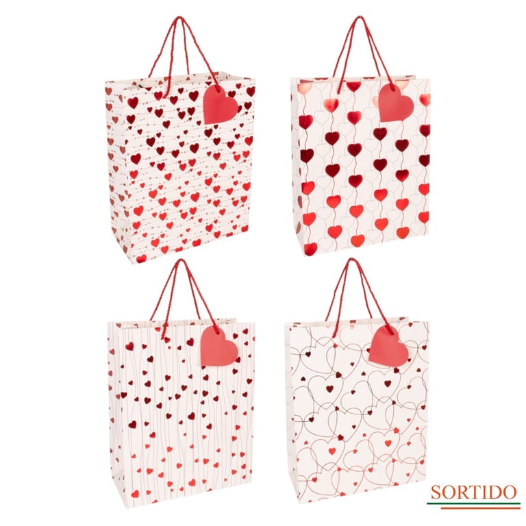 SACOLA PRESENTE 32X26X12 CM CORAÇÕES METALIZADOS COM CARTÃO CARTONADA