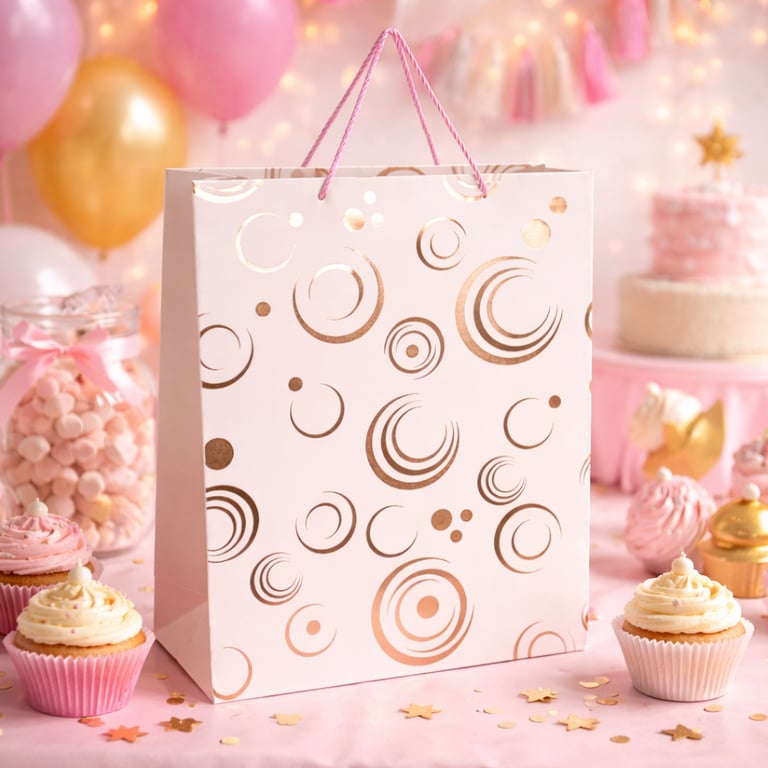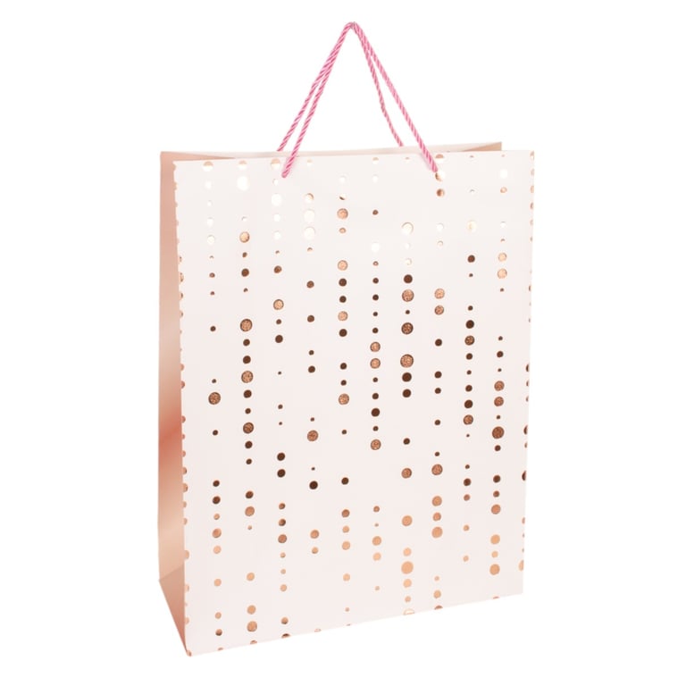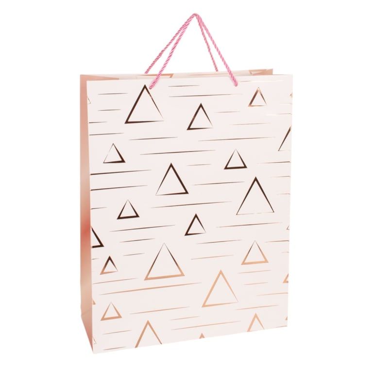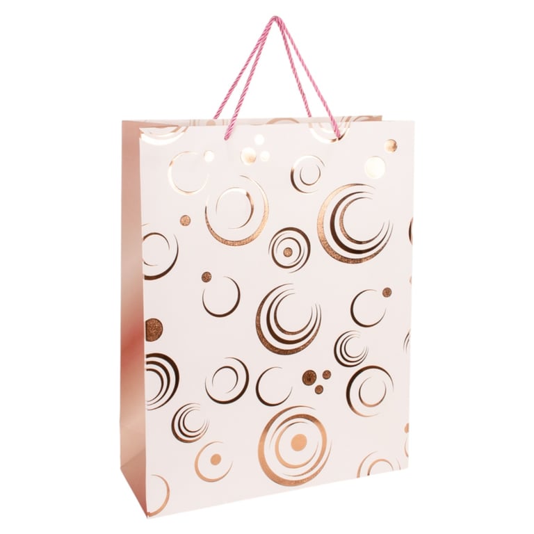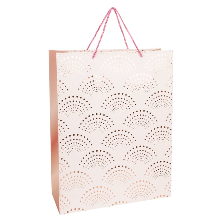 SACOLA PRESENTE 40X31X12 CM DETALHES METALIZADOS ROSE GOLD CARTONADA