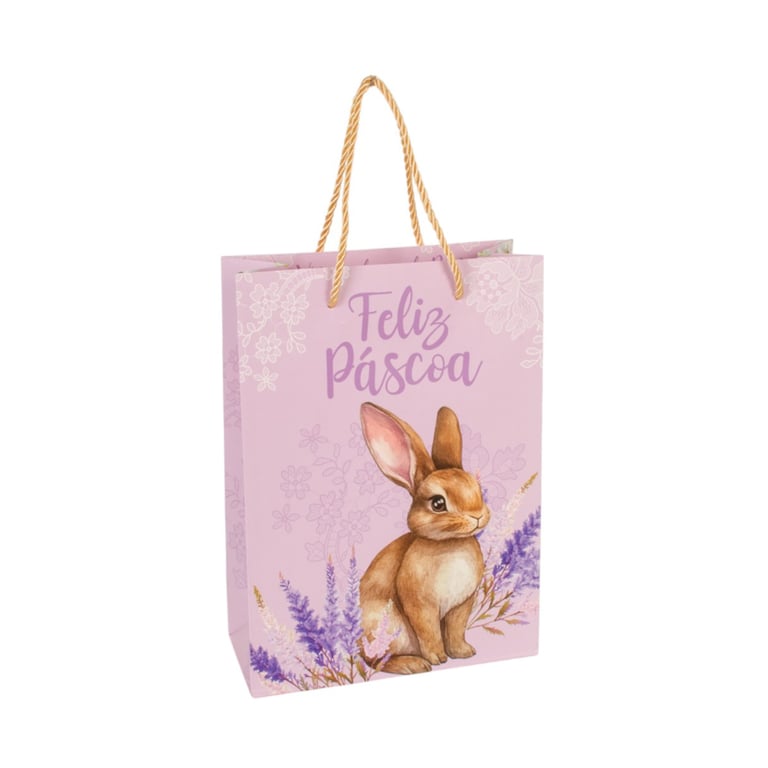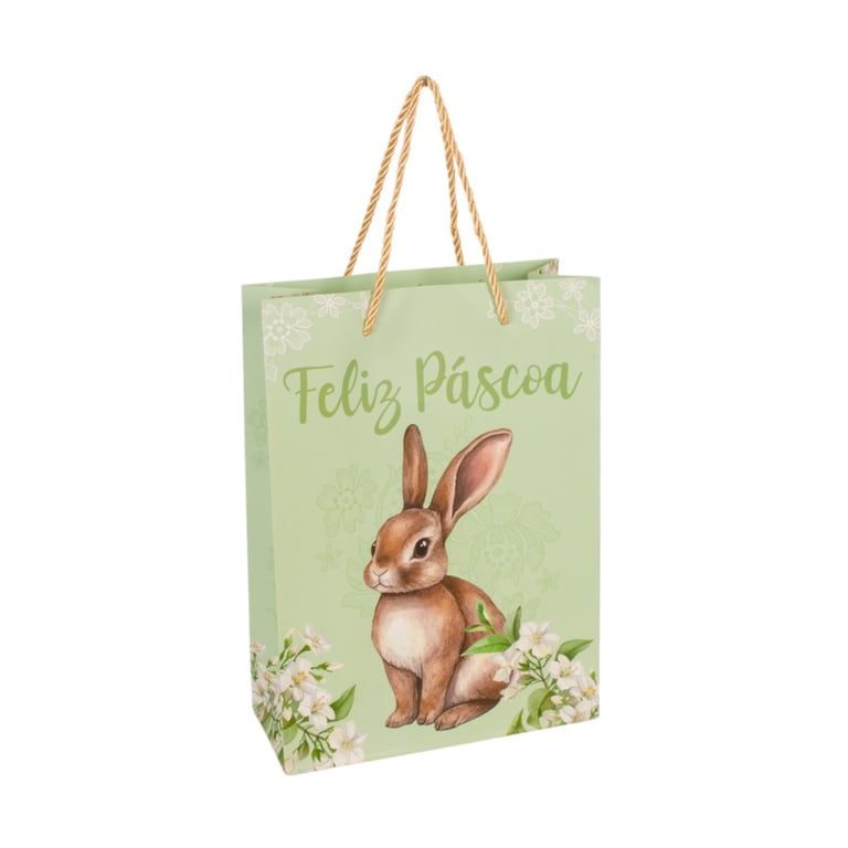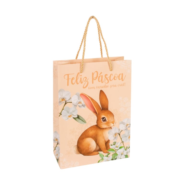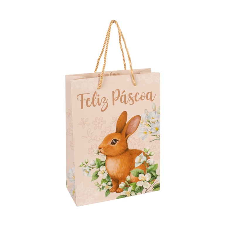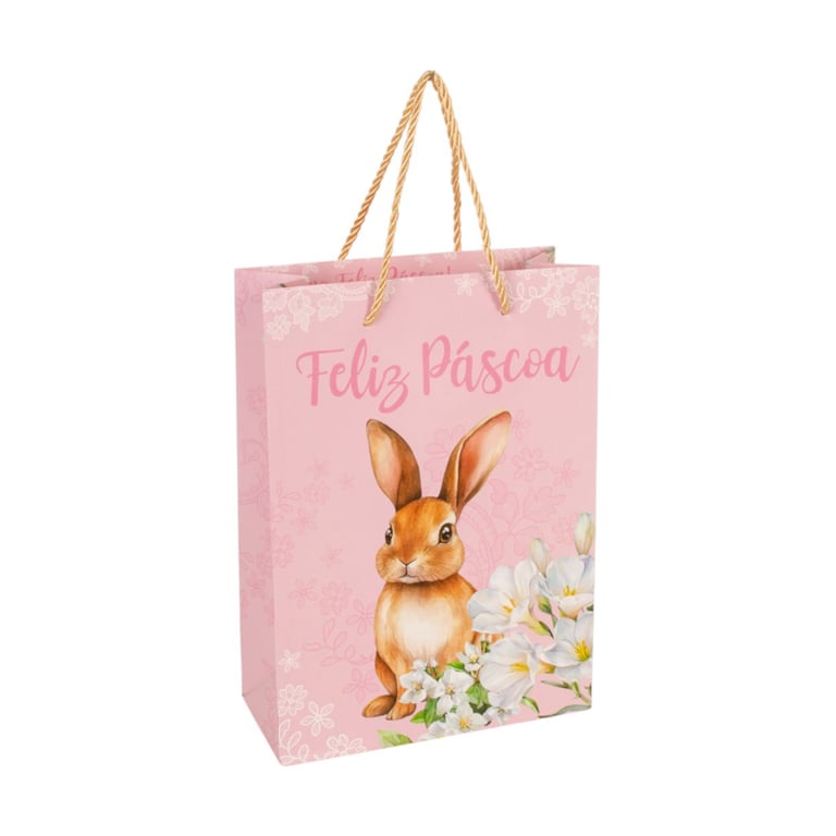 SACOLA PRESENTE PÁSCOA 27X19,4X8,6 CM FLORAL COELHO CARTONADA