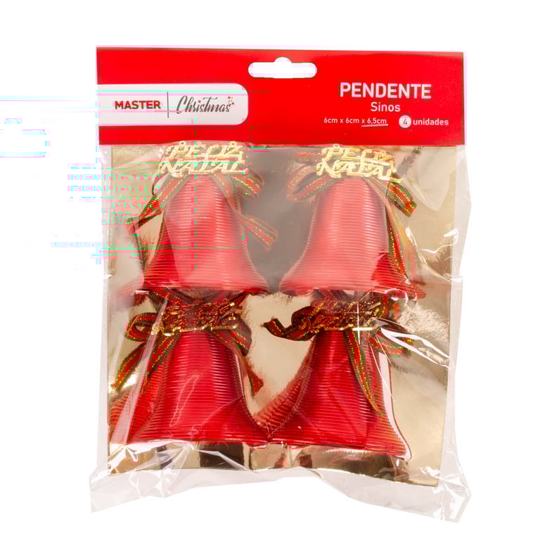 SINO 6,5X6 CM 4 PEÇAS CANELADO COM LAÇO FELIZ NATAL