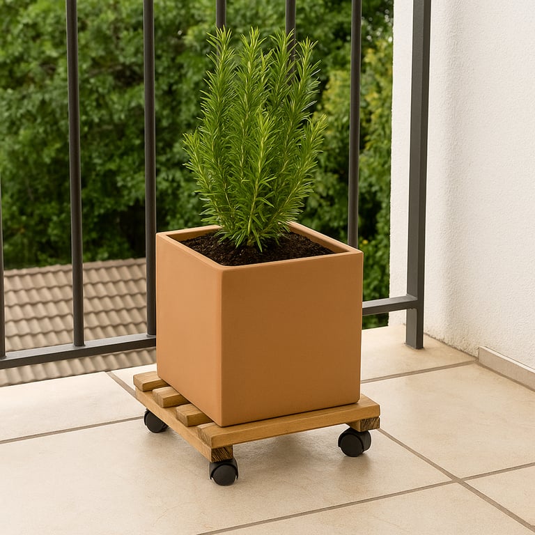 SUPORTE MADEIRA 8X25X25 CM PARA VASOS COM RODAS
