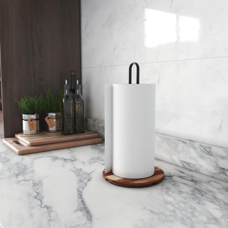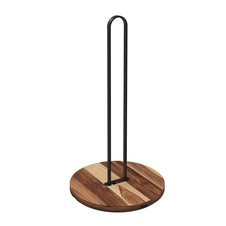 SUPORTE / PORTA PAPEL TOALHA 30X18 CM METAL PRETO E MADEIRA