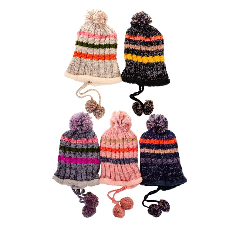 TOUCA LÃ ADULTA 30X20 CM COM TRANÇAS E POMPONS