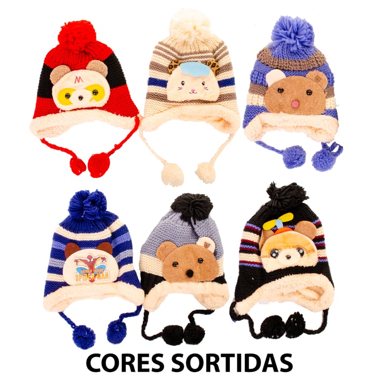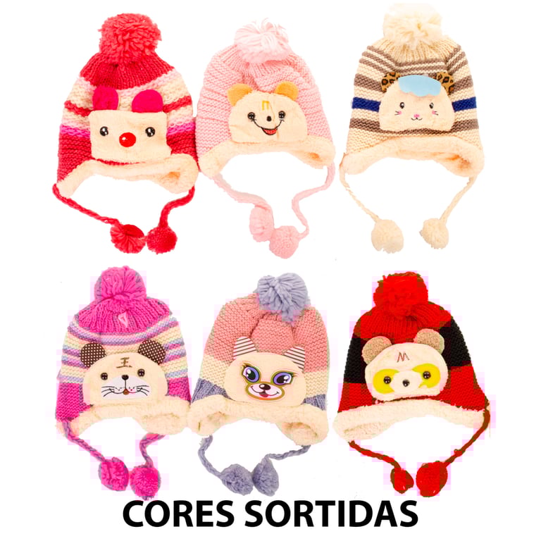 TOUCA LÃ INFANTIL 26X22 CM ANIMAIS COM ORELHA