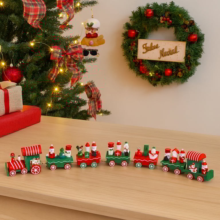 TREM MADEIRA 3,5X42X5,5 CM 6 VAGÕES COM PRESENTES