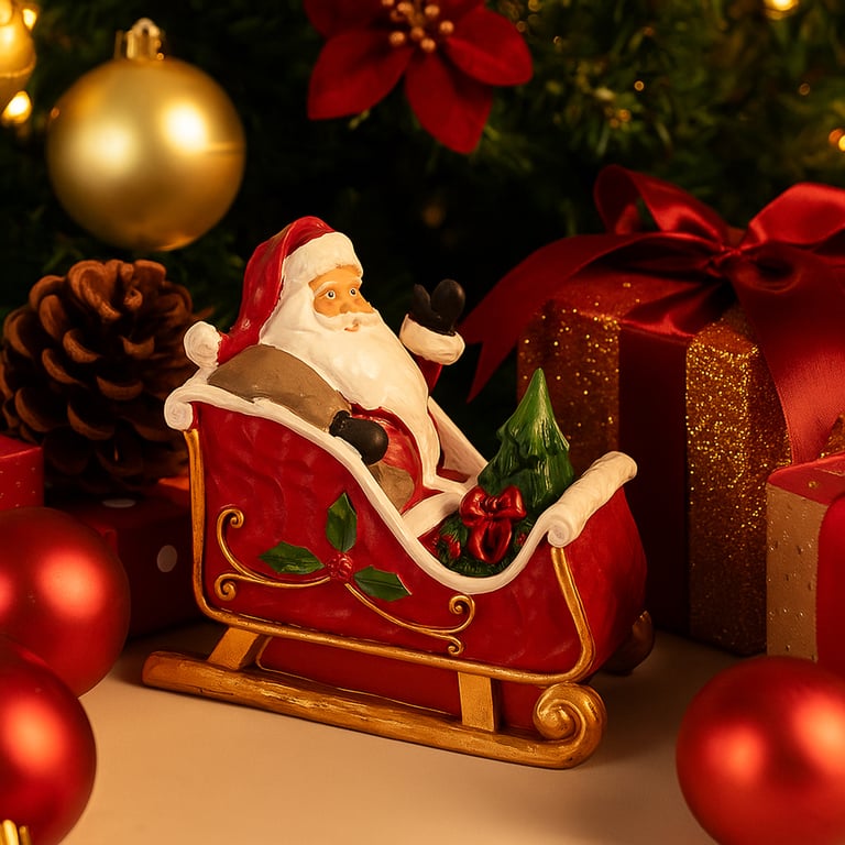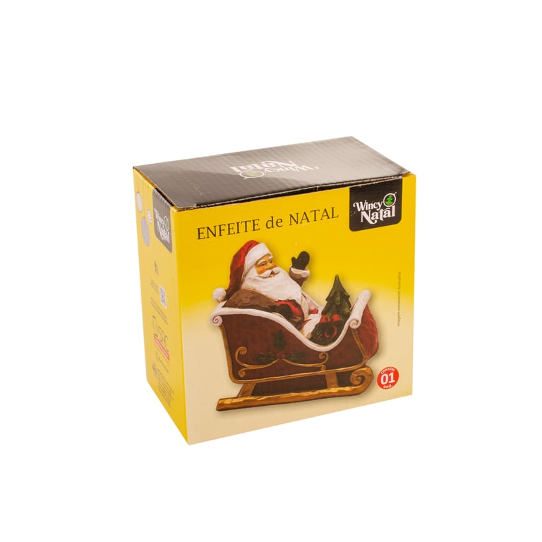 TRENÓ DECORATIVO CERÂMICA 13,5X14,3X8,2 CM COM PAPAI NOEL