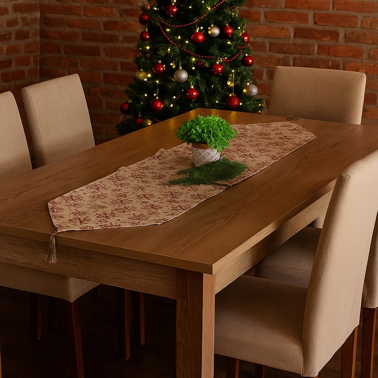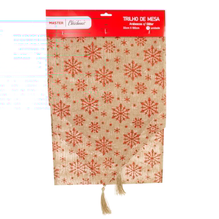 TRILHO MESA 32 CMX1,80 M NATAL JUTA ARABESCOS VERMELHOS GLITTER