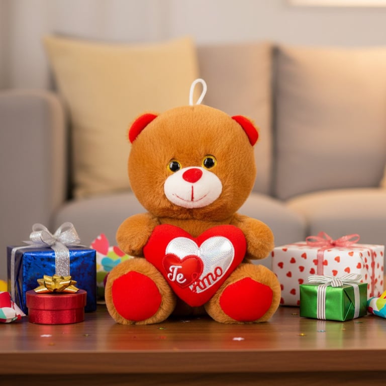 URSO PELÚCIA 20 CM CORAÇÃO TE AMO OLHOS COM GLITER