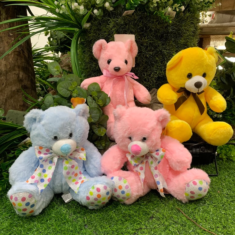URSO PELÚCIA 20 CM LAÇO BOLAS COLORIDAS