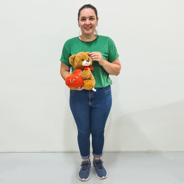 URSO PELÚCIA 25 CM ABRAÇANDO CORAÇÃO EU TE AMO