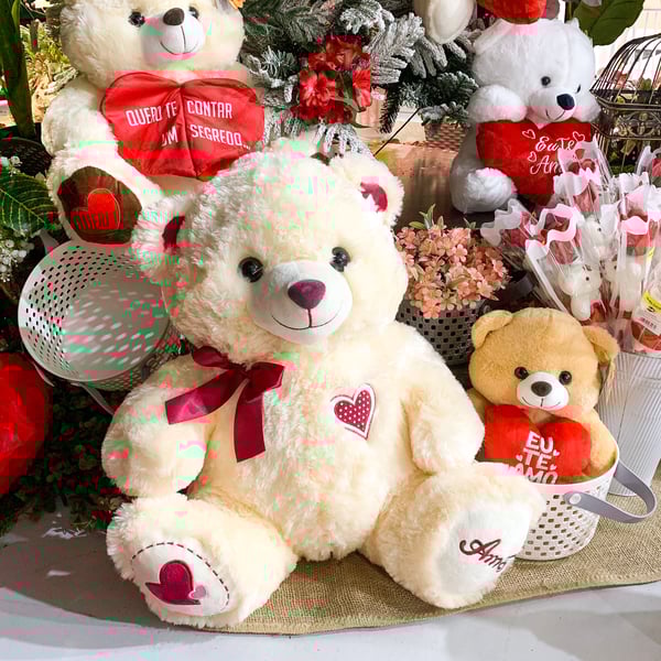 URSO PELÚCIA 55 CM PATA AMOR LAÇO CETIM
