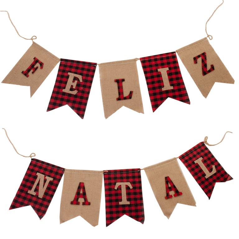 VARAL FELIZ NATAL 20 CMX2,5 M BANDEIRAS JUTA / XADREZ
