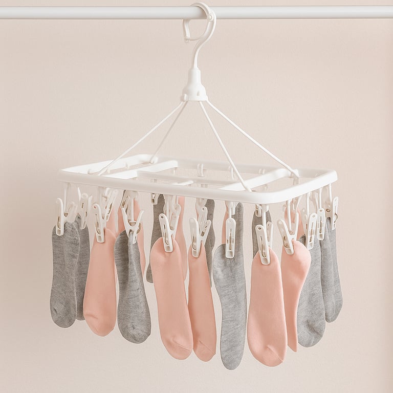 Sugestões de uso BOM PARA PENDURAR MEIAS, PEÇAS ÍNTIMAS E OUTRAS ROUPAS LEVES.