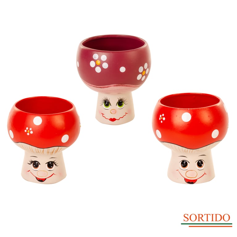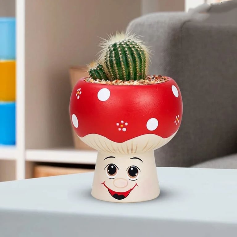 VASO / CACHEPÔ CERÂMICA 13X11 CM COGUMELO COM ROSTO TAÇA