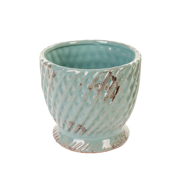 VASO / CACHEPÔ CERÂMICA 17X18 CM CANELADO ONDULADO ROMA