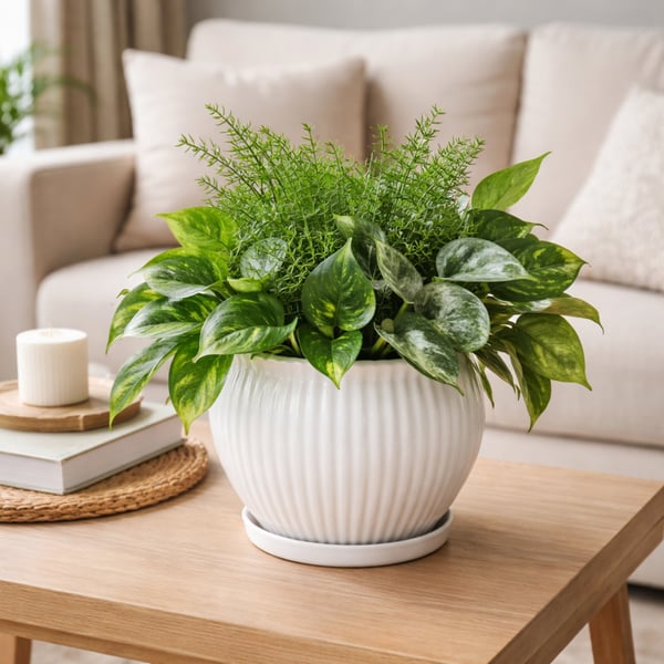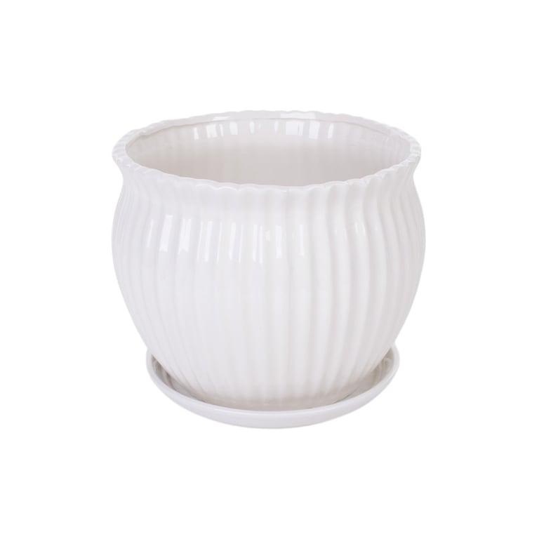 VASO / CACHEPÔ CERÂMICA ANTÚRIO 19X21 CM BRANCO COM PRATO