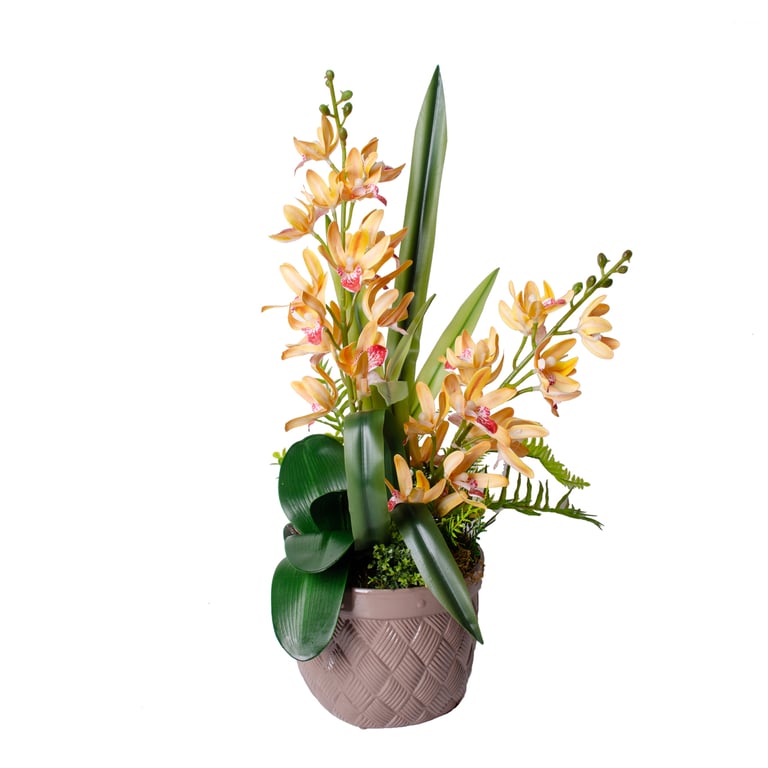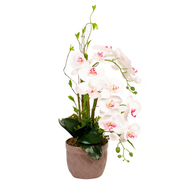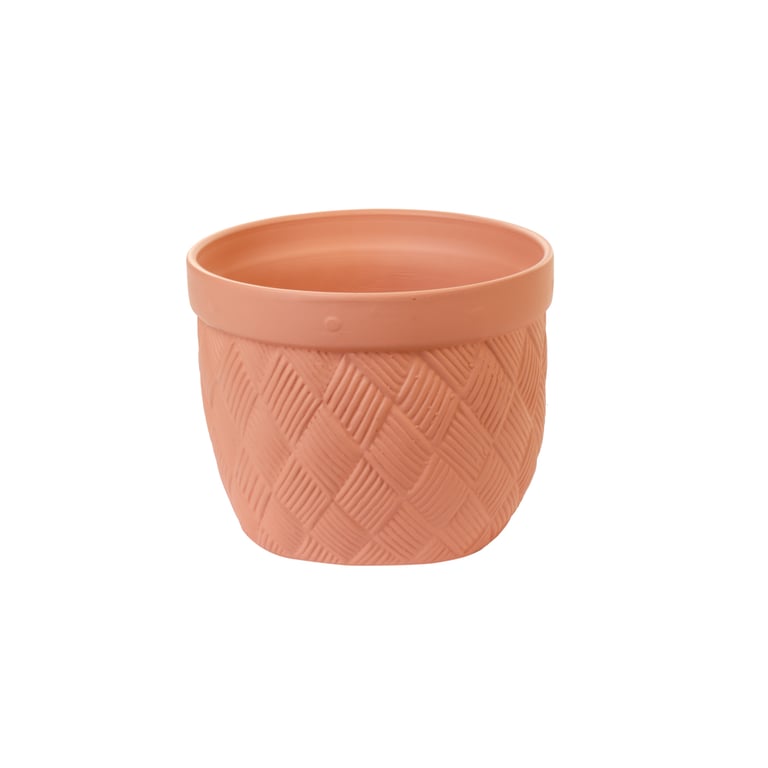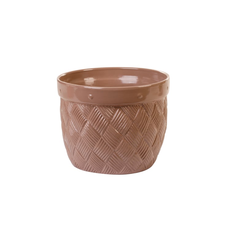 VASO / CACHEPÔ CERÂMICA CRISÂNTEMO 14X17 CM CESTO TRANÇADO
