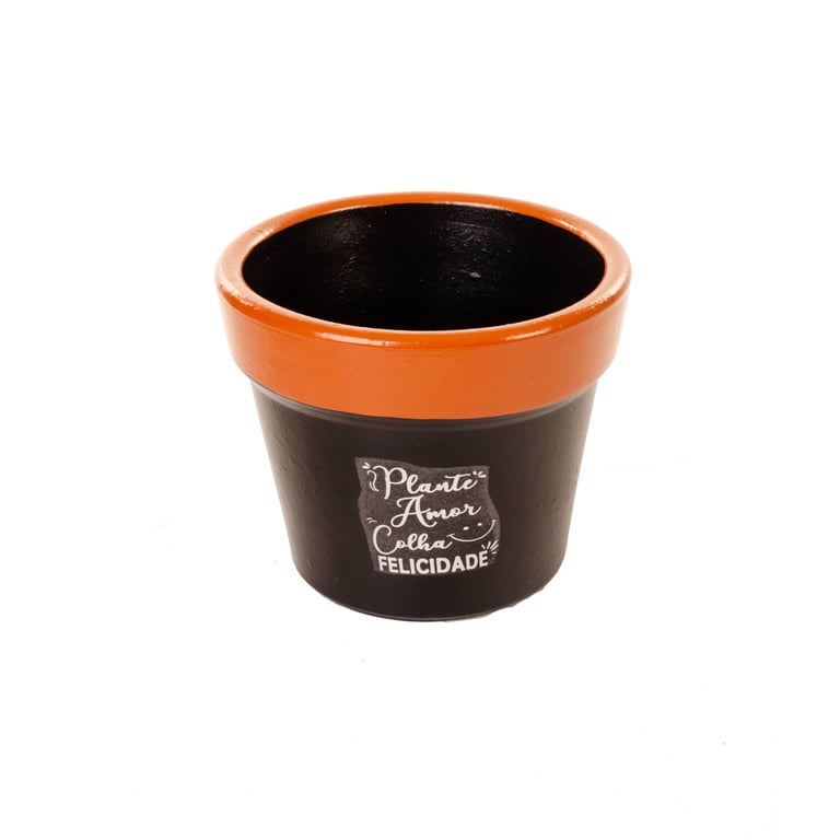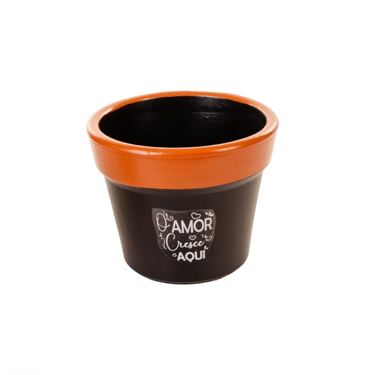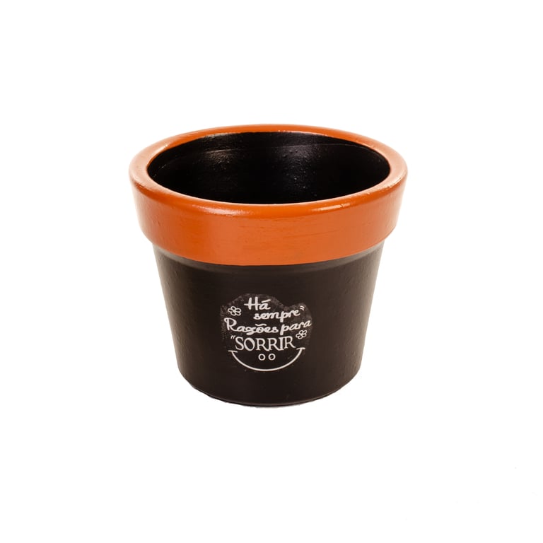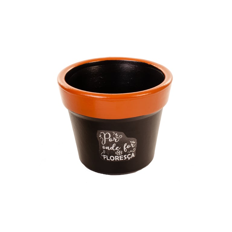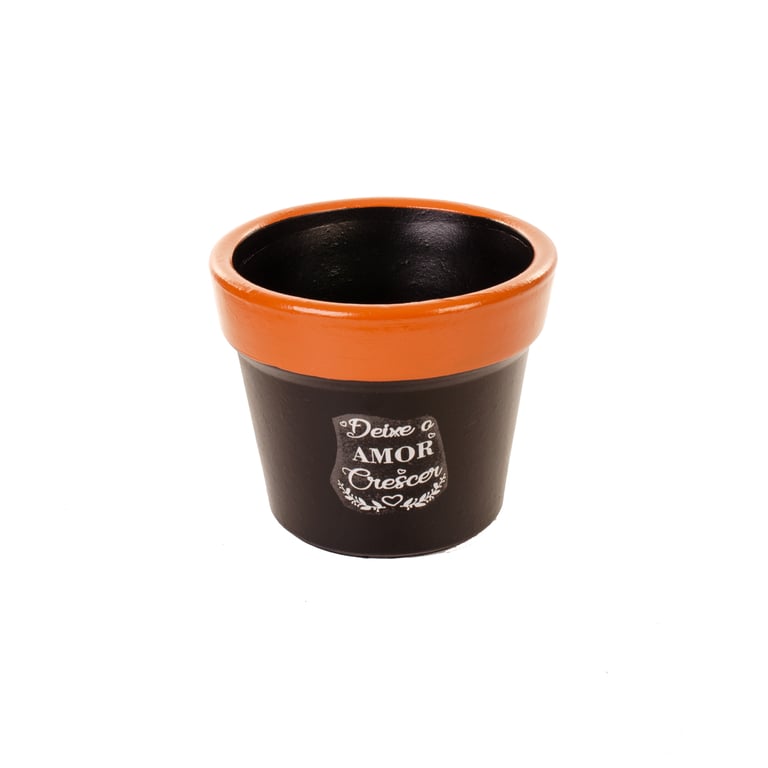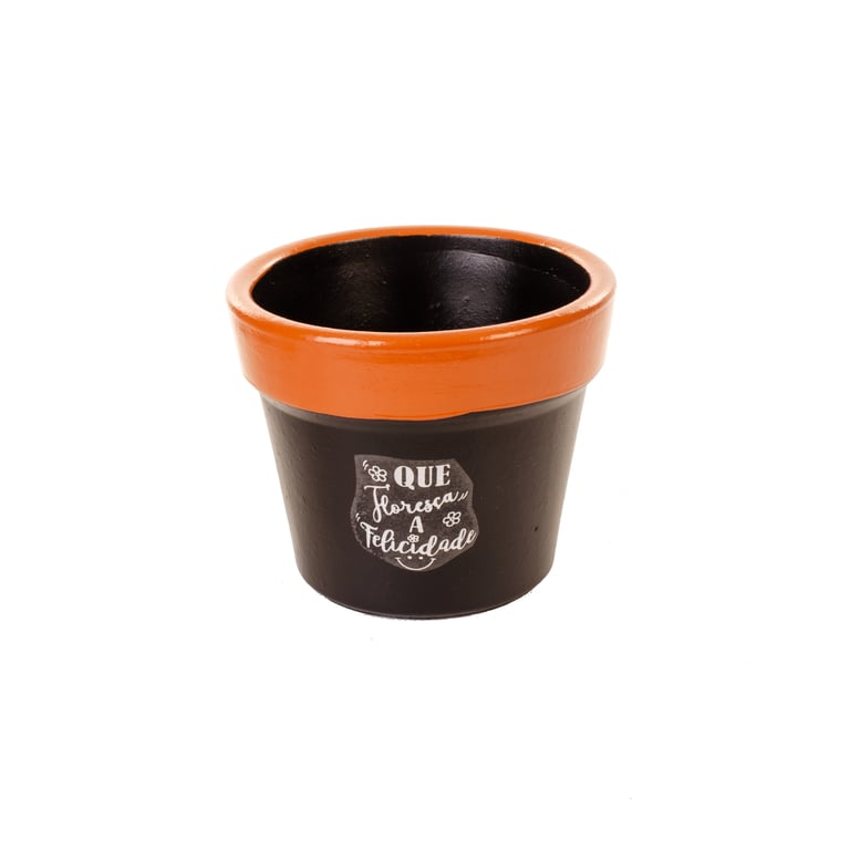 VASO / CACHEPÔ CERÂMICA CRISÂNTEMO 14X17 CM PRETO / MARROM COM FRASES