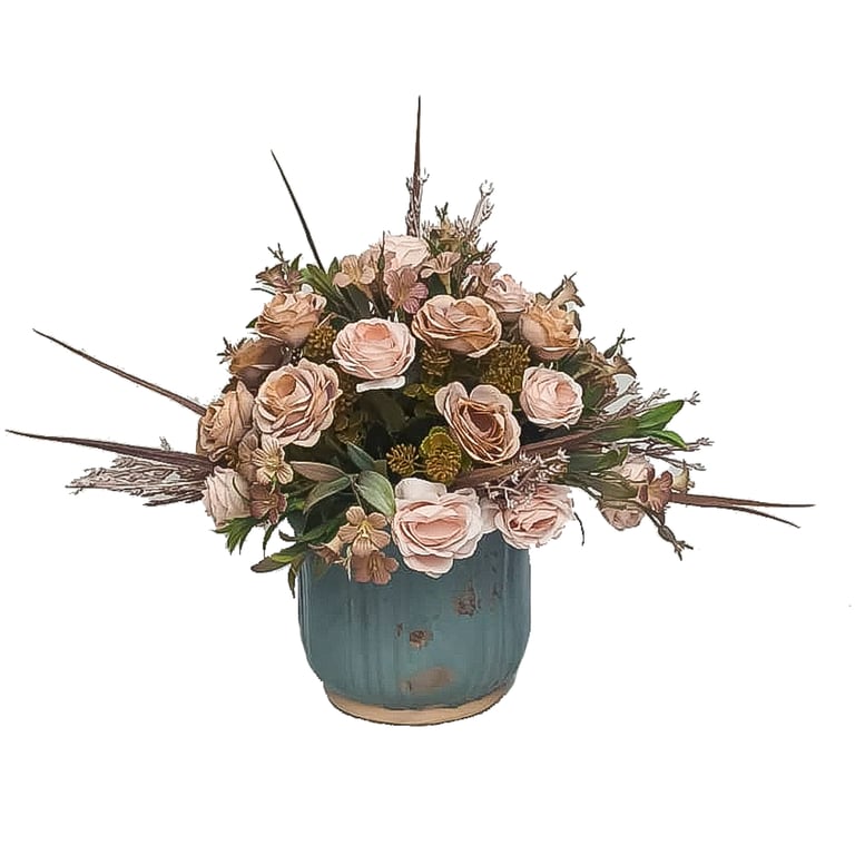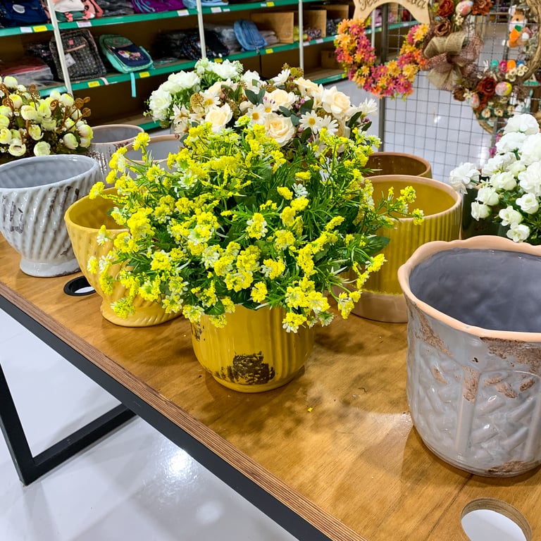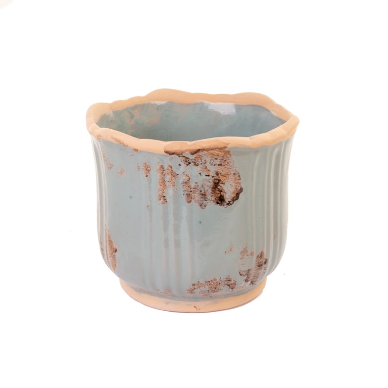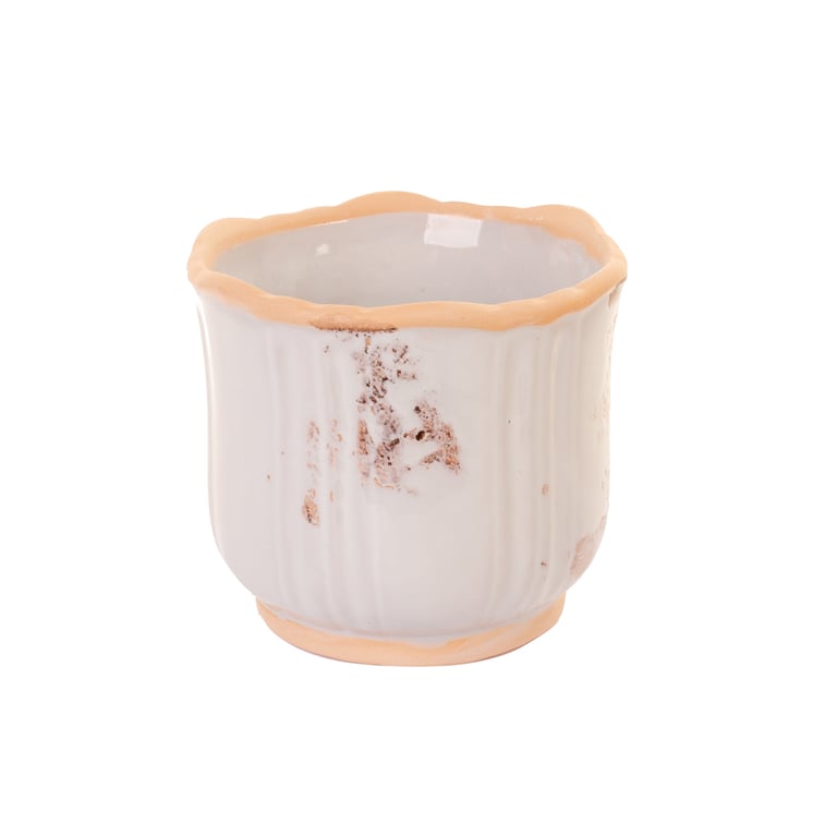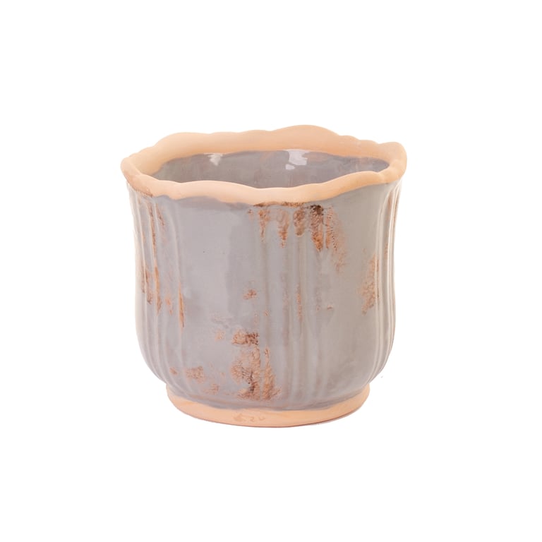 VASO / CACHEPÔ CERÂMICA CRISÂNTEMO 15X17 CM CANELADO BORDA ONDULADA CHINA