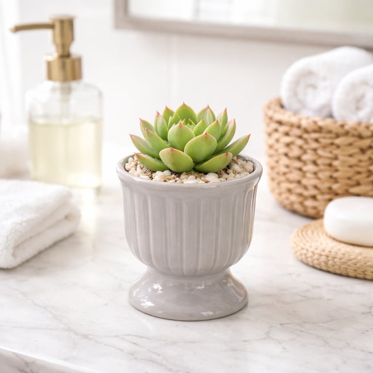 VASO / CACHEPÔ CERÂMICA KALANCHOE 8X8 CM PEDESTAL CANELADO