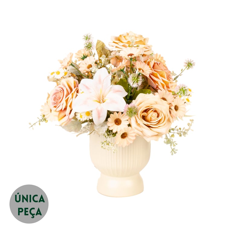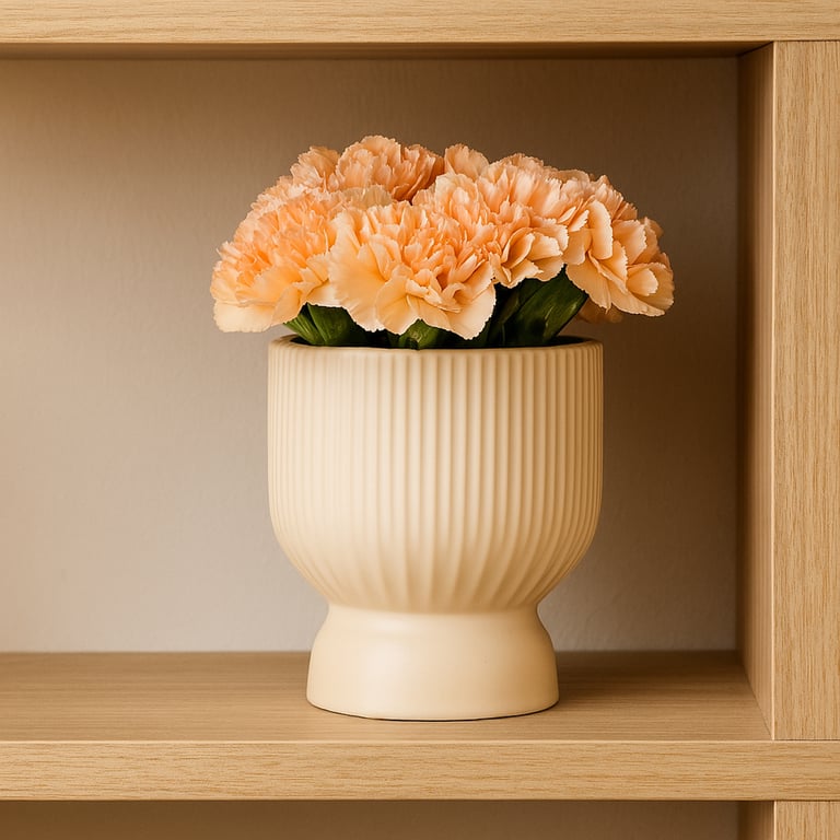 VASO / CACHEPÔ CERÂMICA VIOLETA 13X12 CM CANELADO TAÇA BEGE STRIPES CALICE