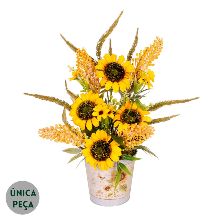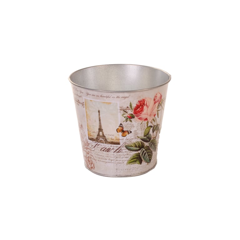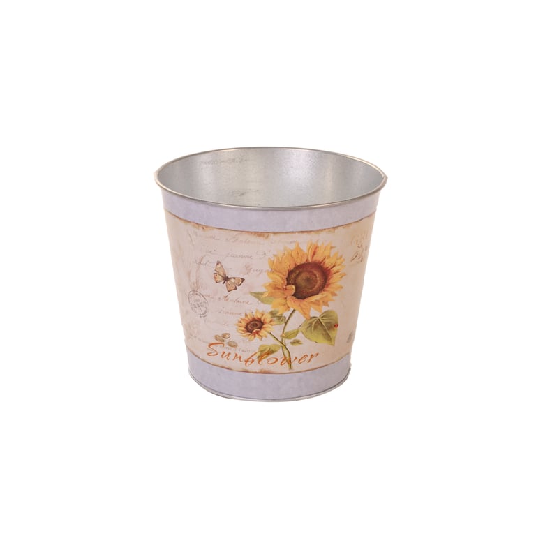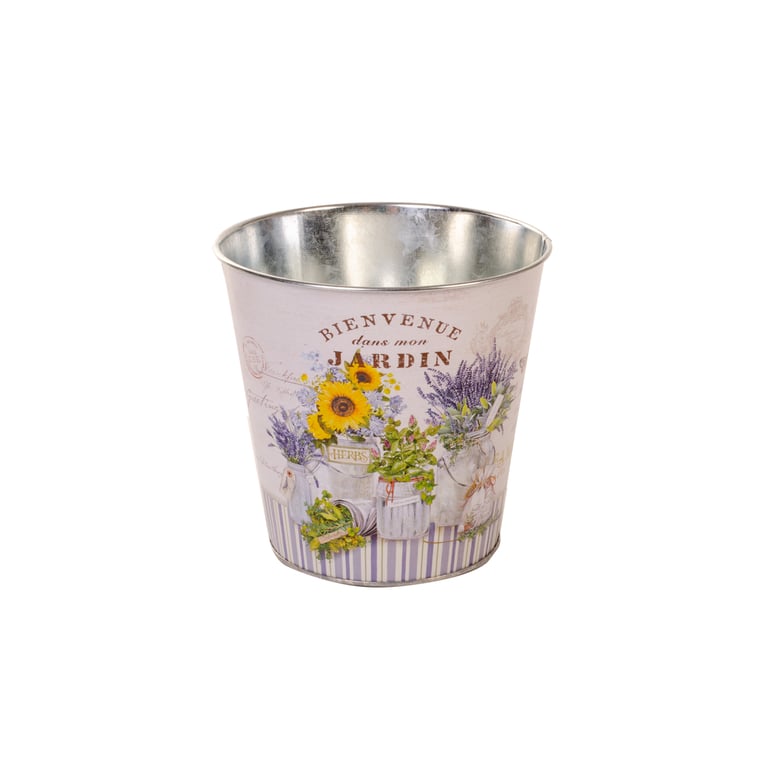 VASO / CACHEPÔ LATA CRISÂNTEMO 13X15 CM REDONDO DECORADO