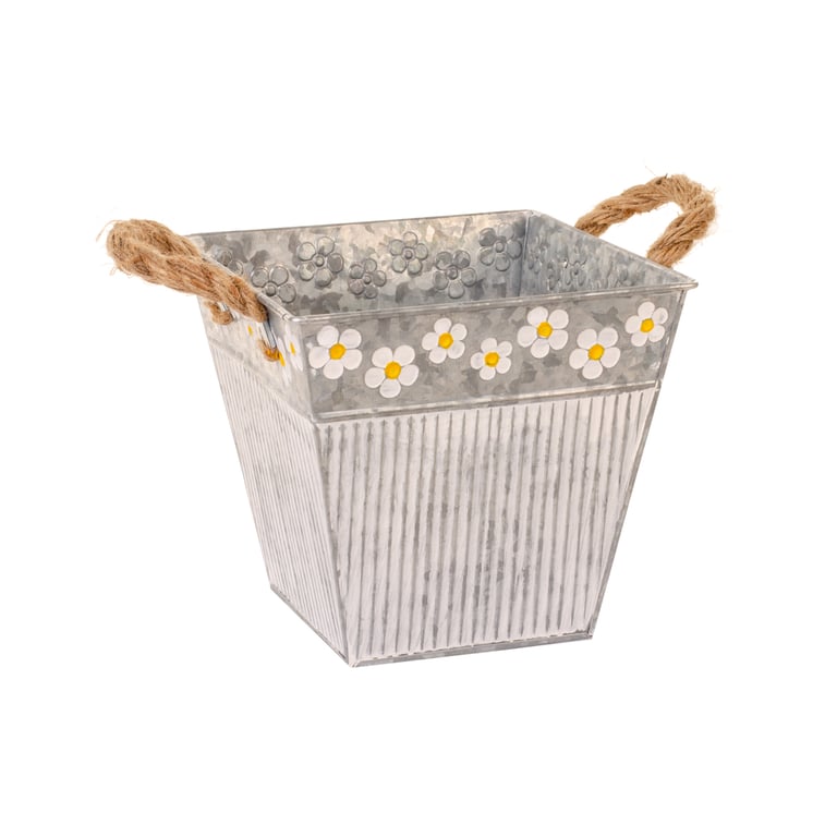 VASO / CACHEPÔ LATA CRISÂNTEMO 15X17X17 CM MARGARIDAS COM ALÇA CORDA
