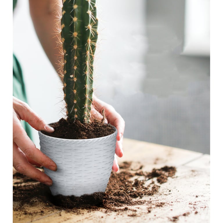 VASO / CACHEPÔ POLIPROPILENO CRISÂNTEMO 14X14,5 CM TRANÇADO RATTAN
