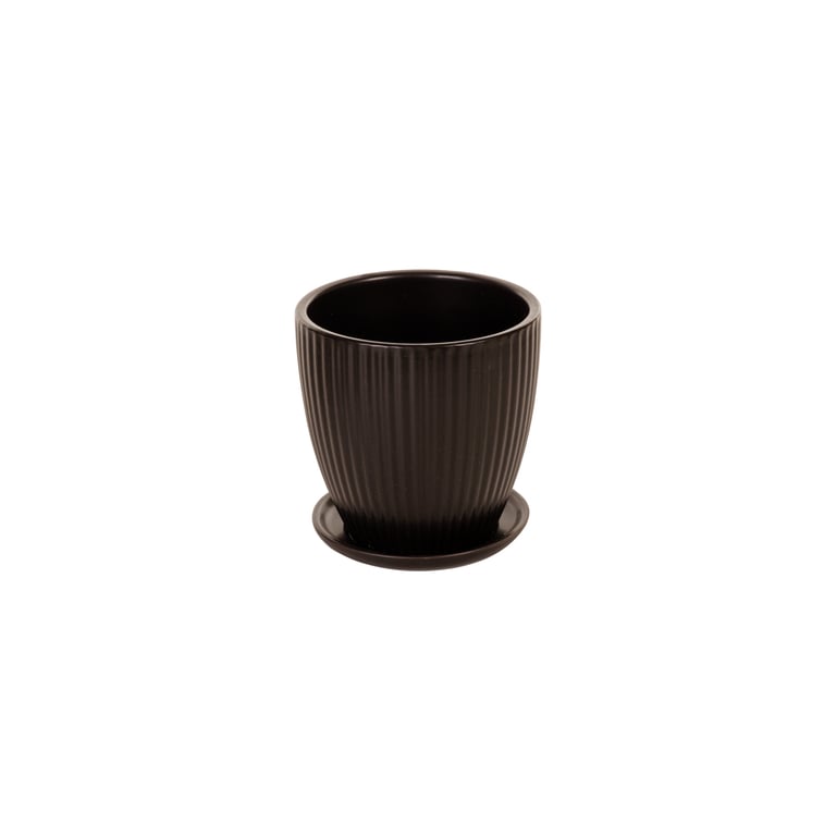 VASO CERÂMICA 11X9,5 CM CANELADO COM PRATO
