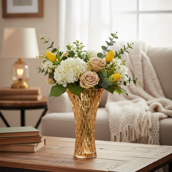 VASO VIDRO 20X11 CM DIAMANTE ÂMBAR
