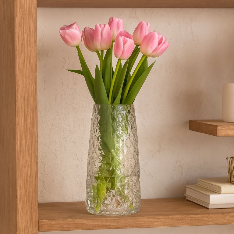 VASO VIDRO 22X10 CM TRIANGULOS RELEVO