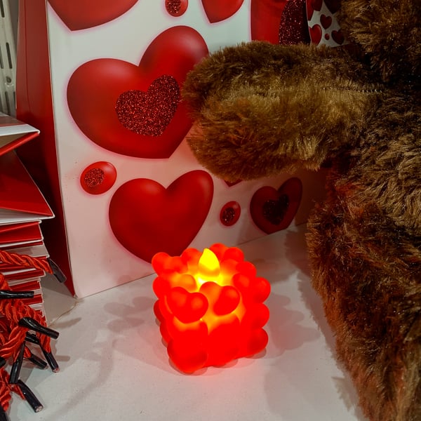 VELA LED 5X5X5 CM QUADRADA CORAÇÕES BUBLLE ELETRÔNICA