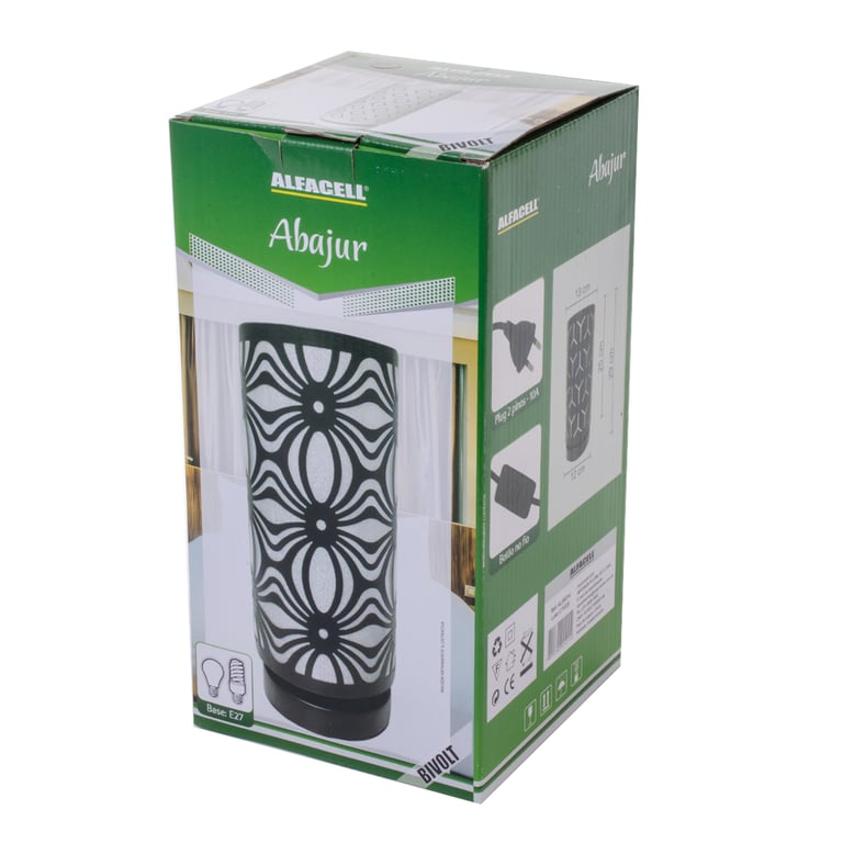 ABAJUR 30X12 CM CILINDRO ARABESCOS PRETO / BRANCO