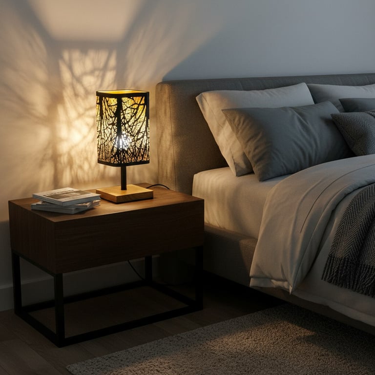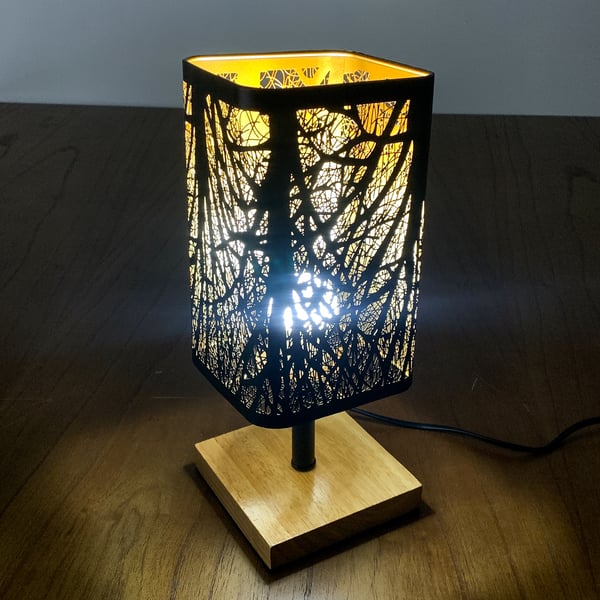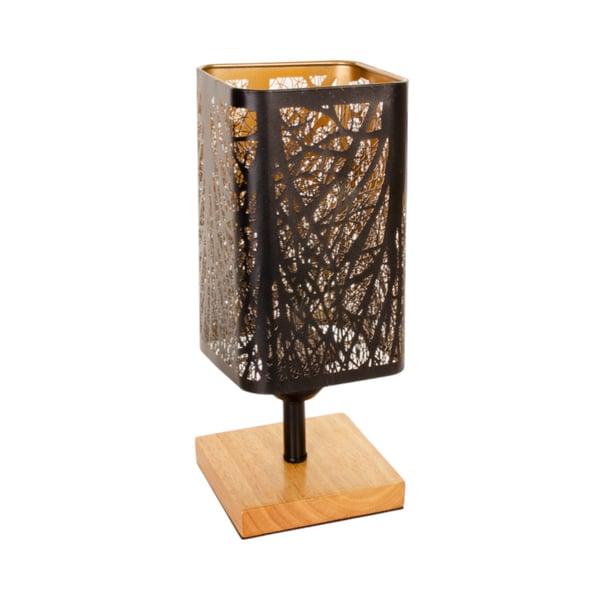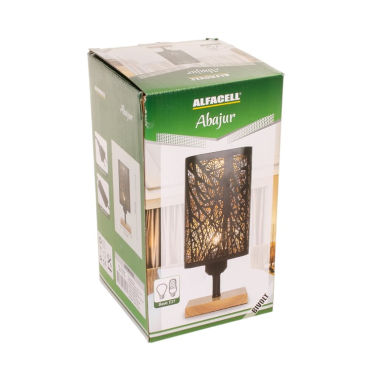 ABAJUR 30X12 CM METAL VAZADO BASE MADEIRA BIVOLT
