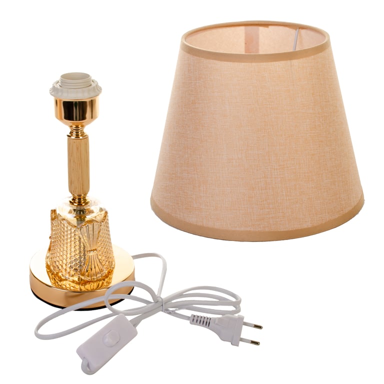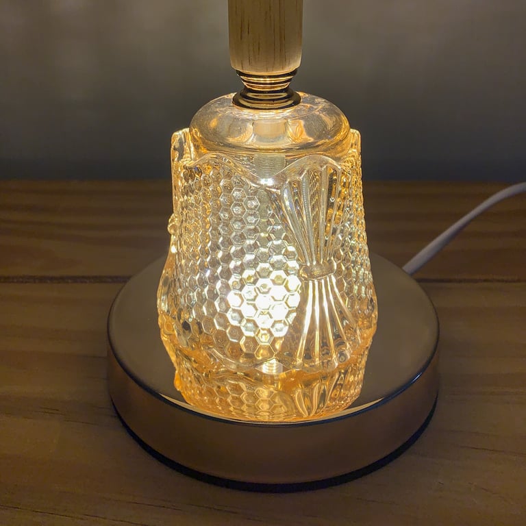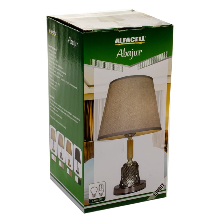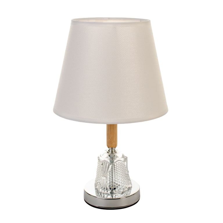 ABAJUR 36X23 CM BASE VIDRO E MADEIRA BIVOLT